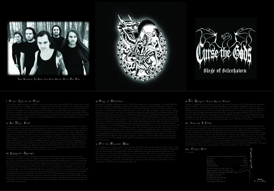 I was given the opportunity to create the album layout for the Band Curse the Gods Album:Siege of Scirehaven. I had to fit all the lyrics neatly on the page along with the credits. I also have to create a way to display the images on the front. I also created the sword graphic next to the graphic.
